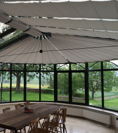 Le store bateau est la solution idéale pour associer design et fonctionnalité. Réalisé sur mesure, il diffuse une lumière douce grâce à son tissu plissé. Son allure raffinée en fait un élément décoratif fort, parfait pour créer une atmosphère cosy et sophistiquée.
